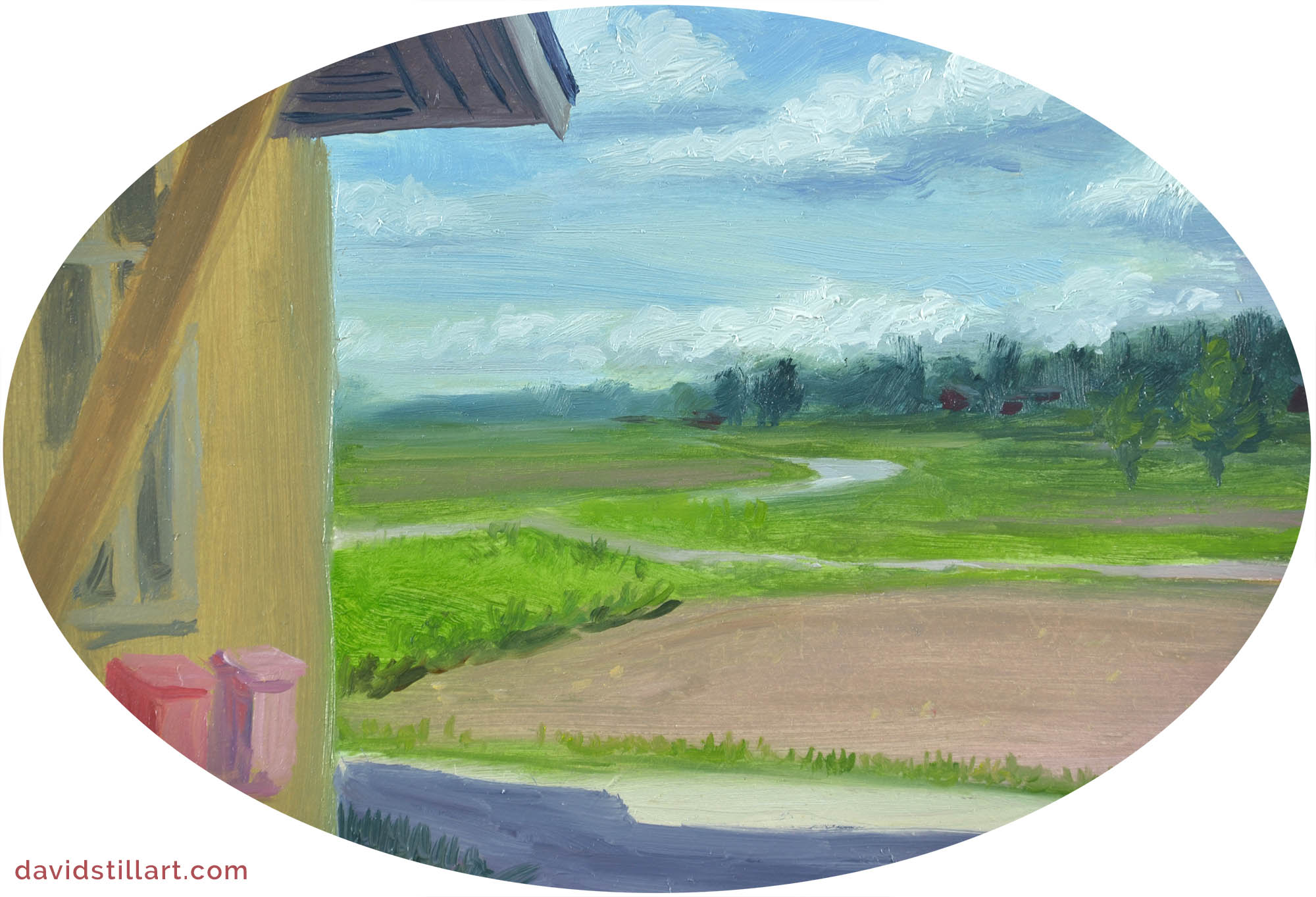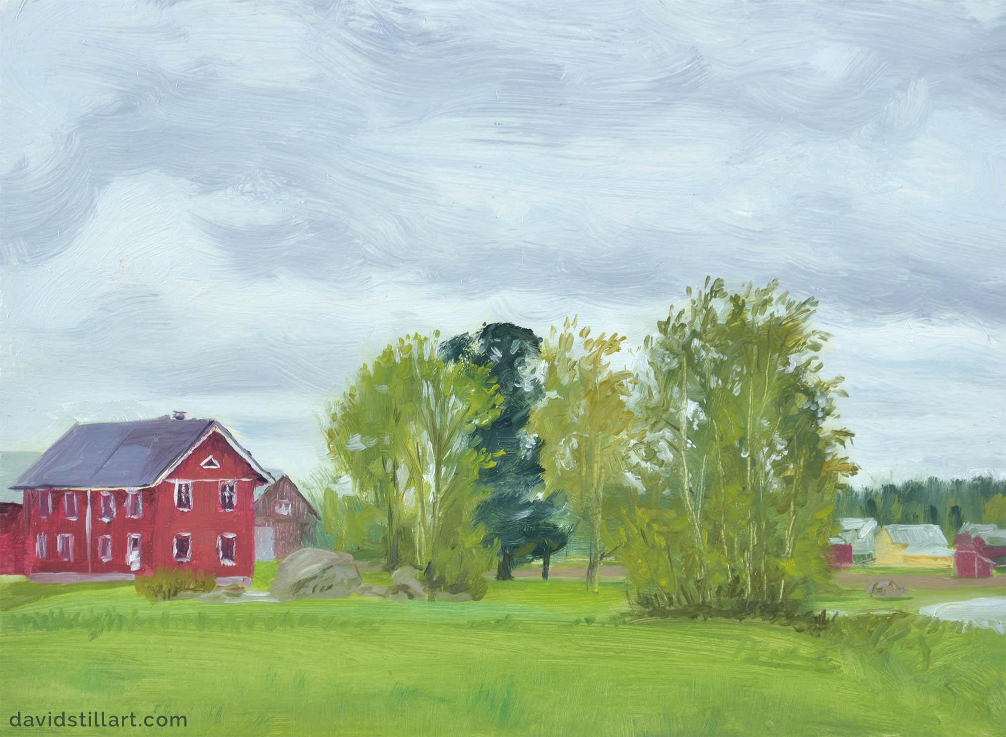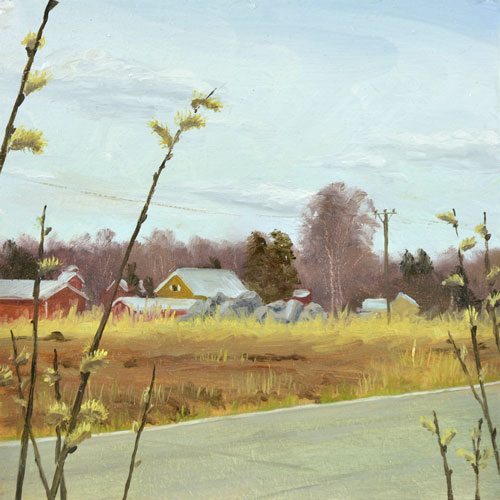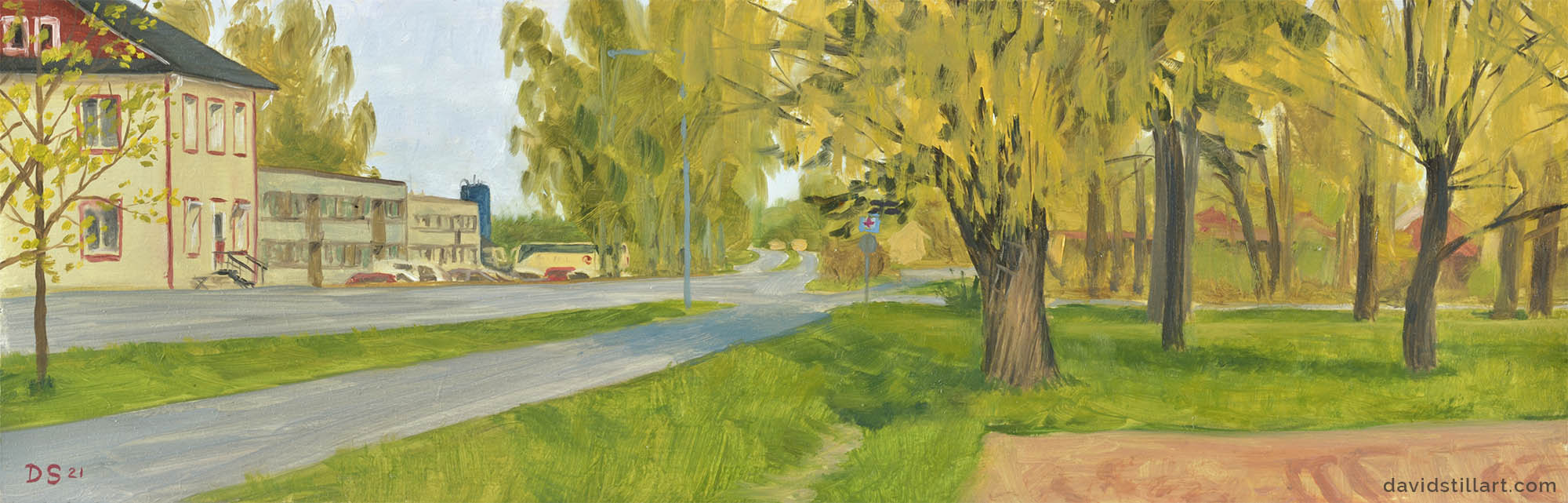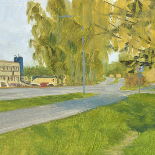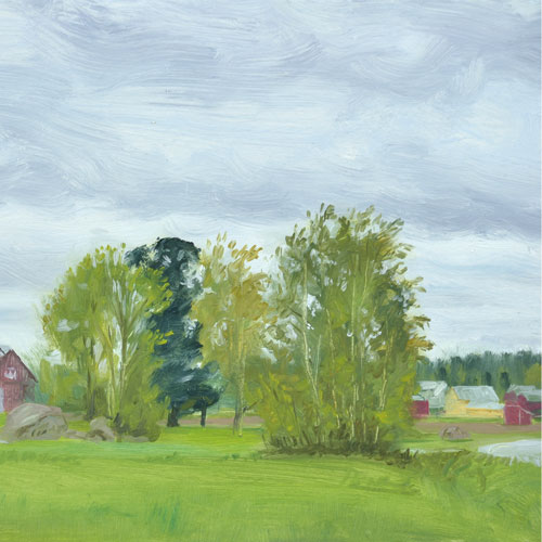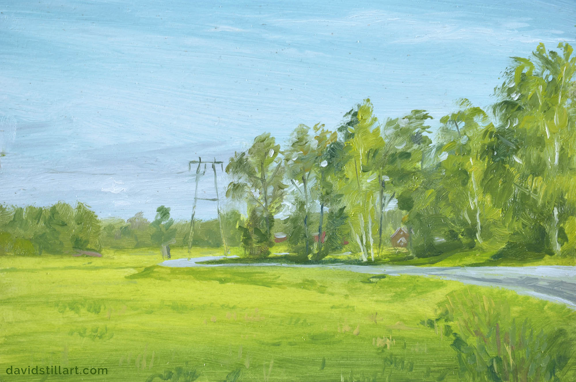 A series of landscapes painted along Vöråvägen in Finland. Each picture includes the place where I was standing when painting the next picture.