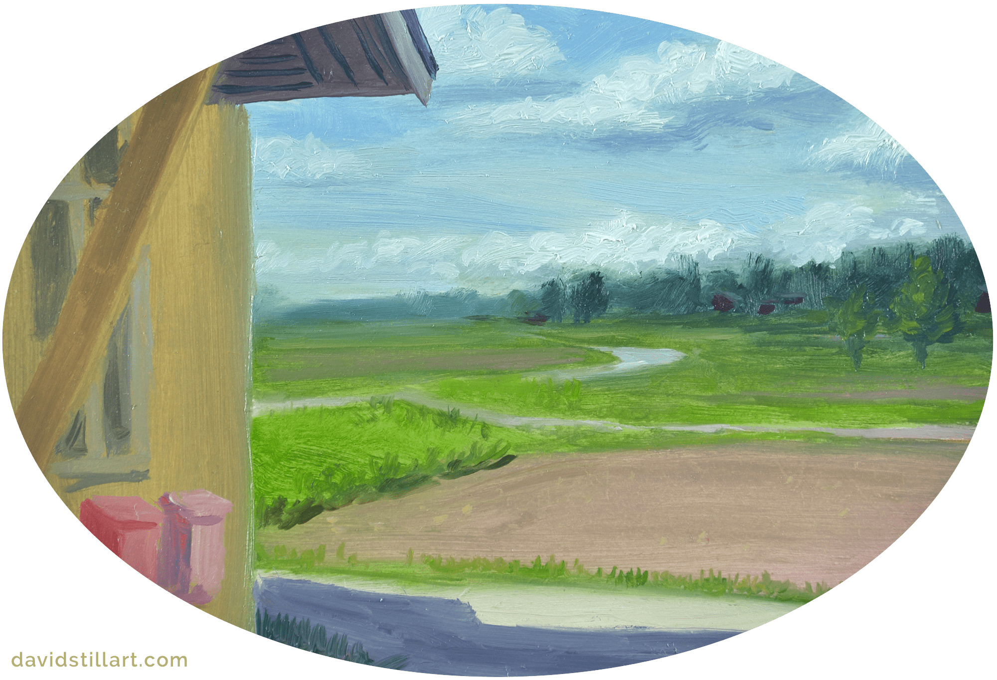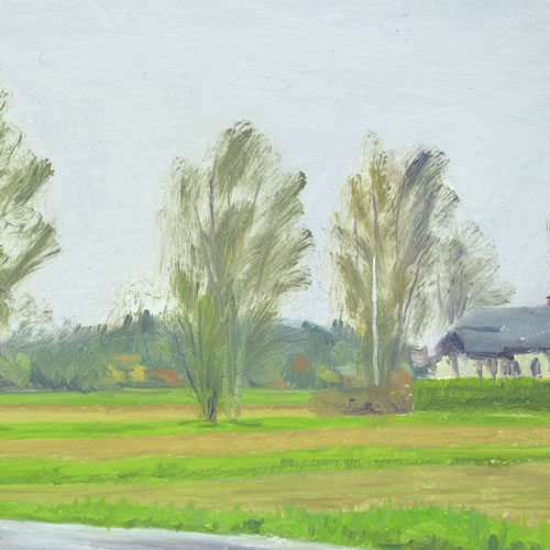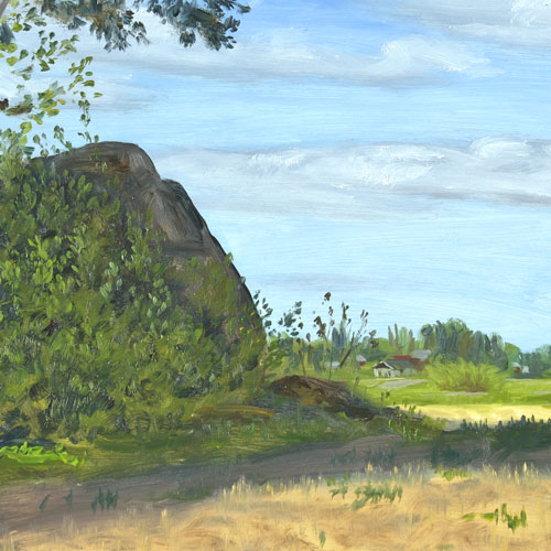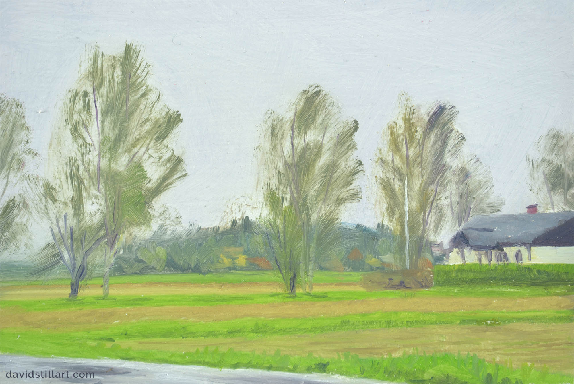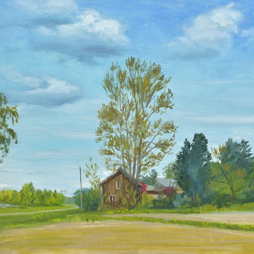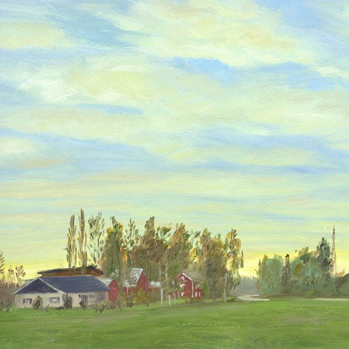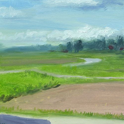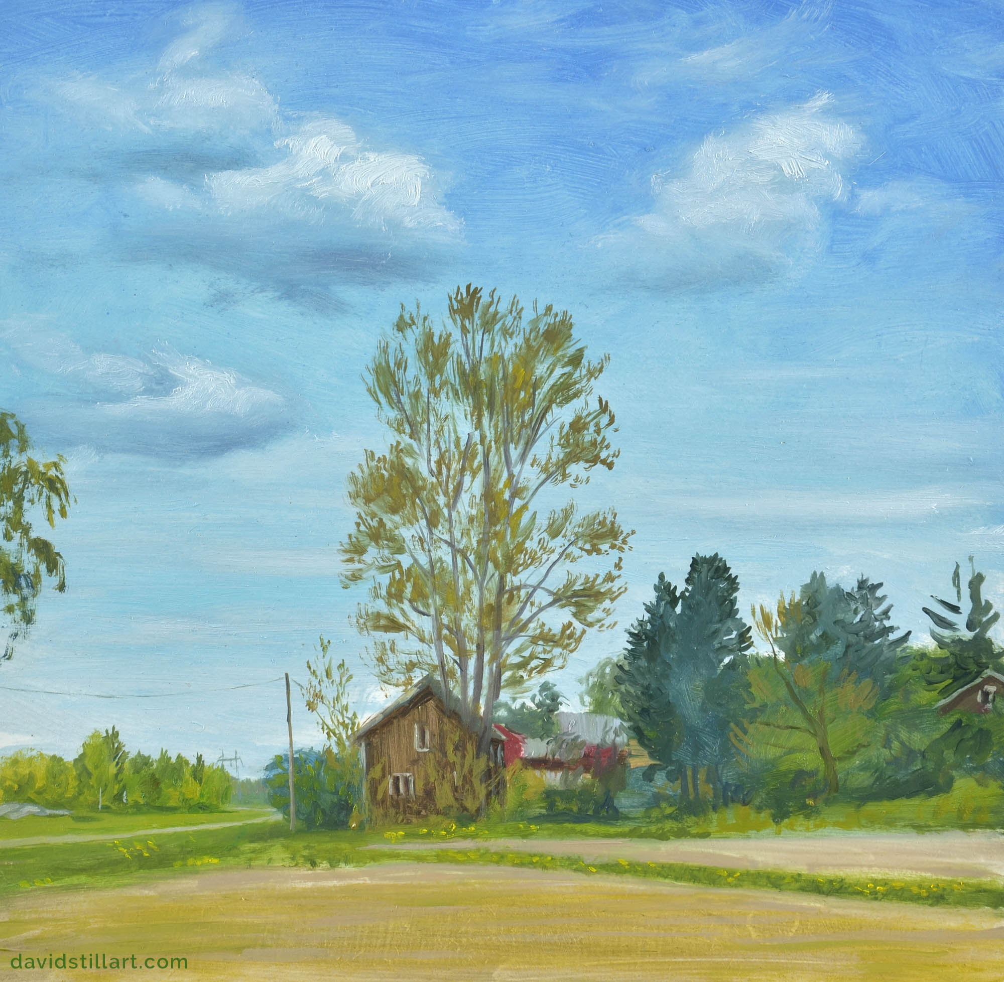 A series of landscapes painted along Vöråvägen in Finland. Each picture includes the place where I was standing when painting the next picture.