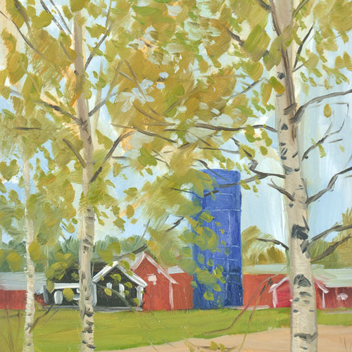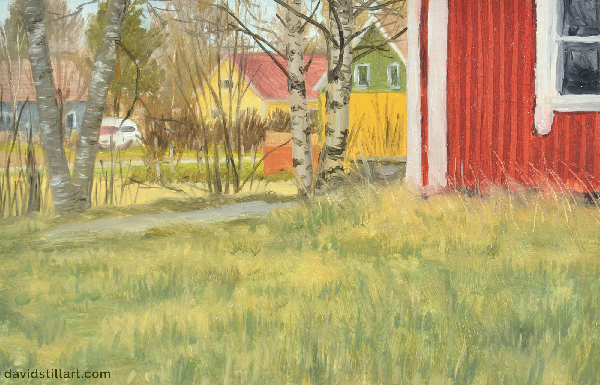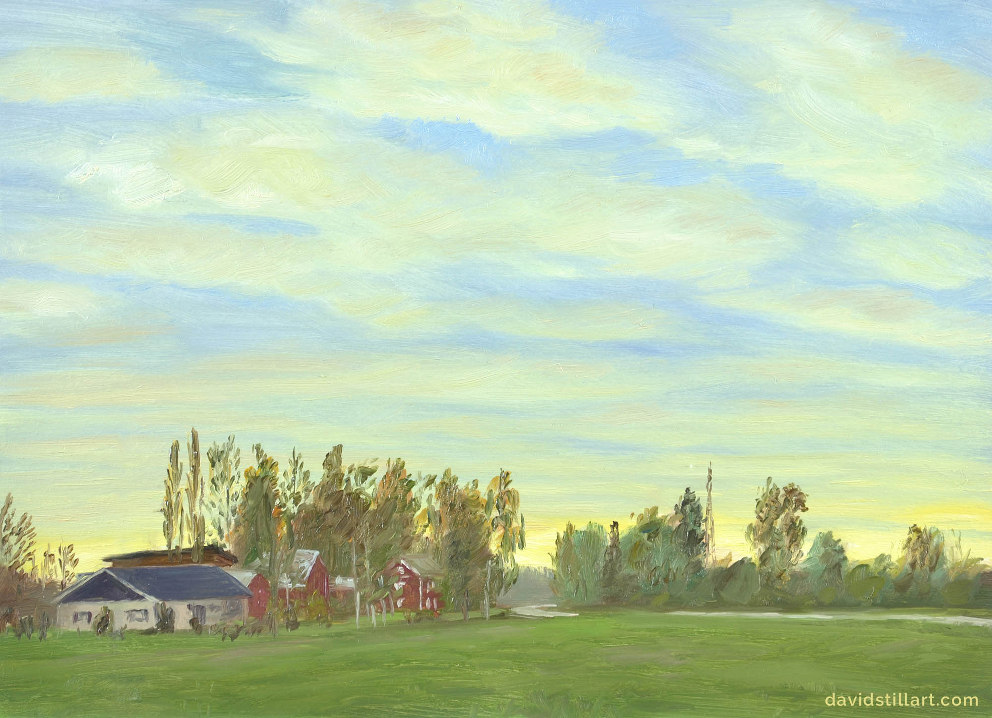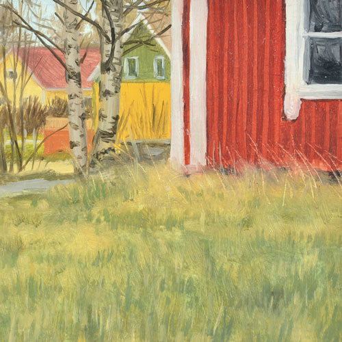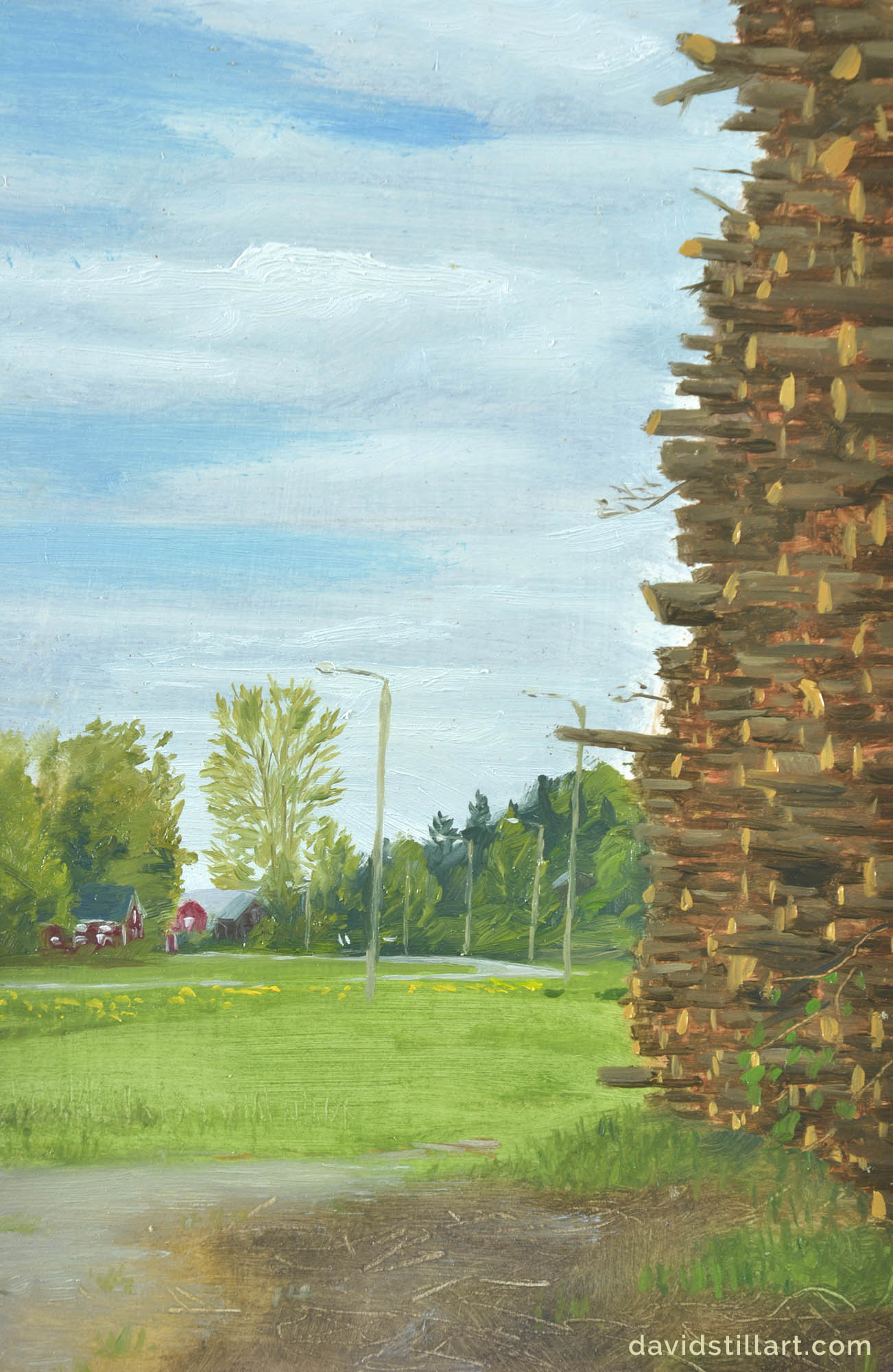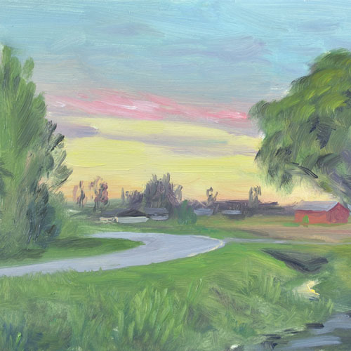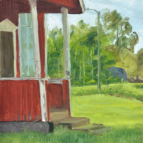 A series of landscapes painted along Vöråvägen in Finland. Each picture includes the place where I was standing when painting the next picture.