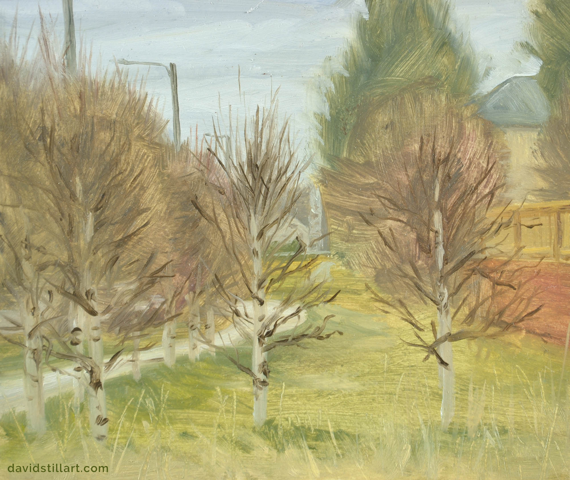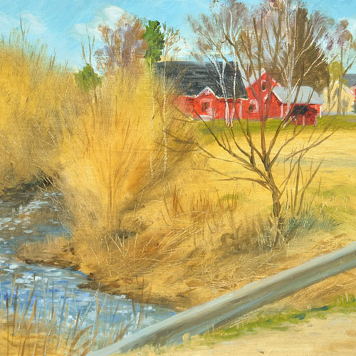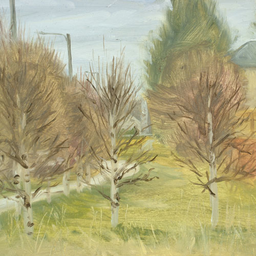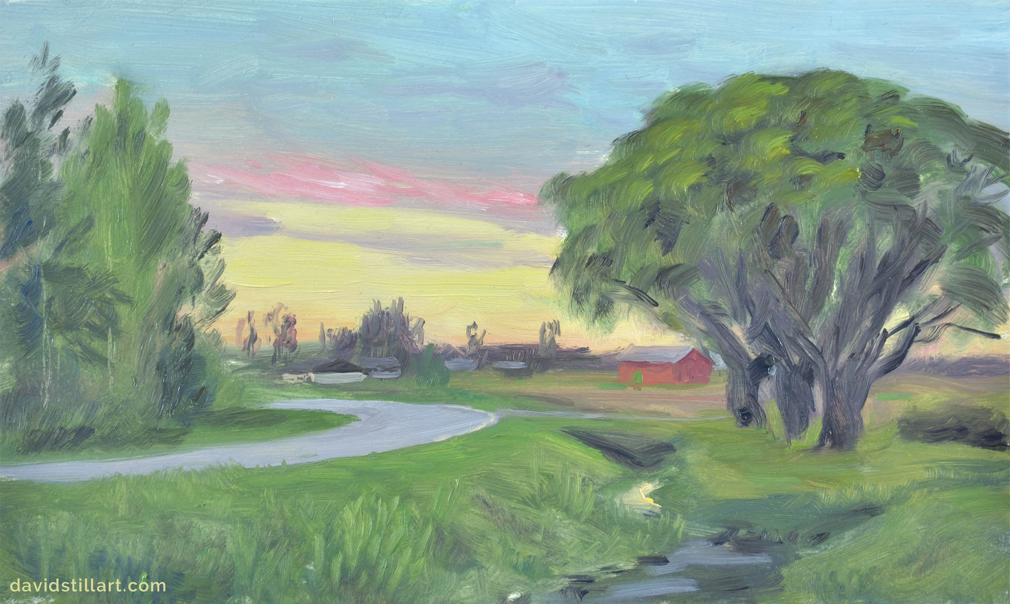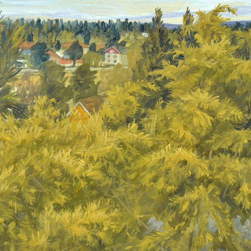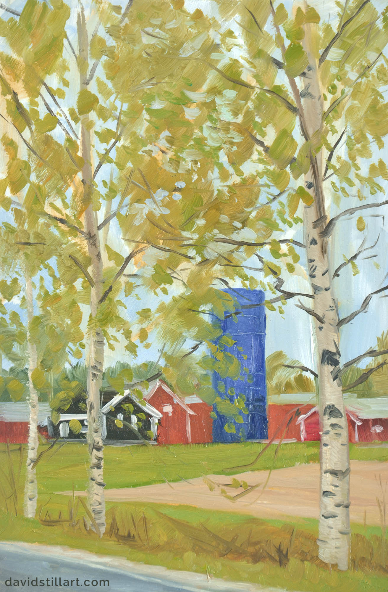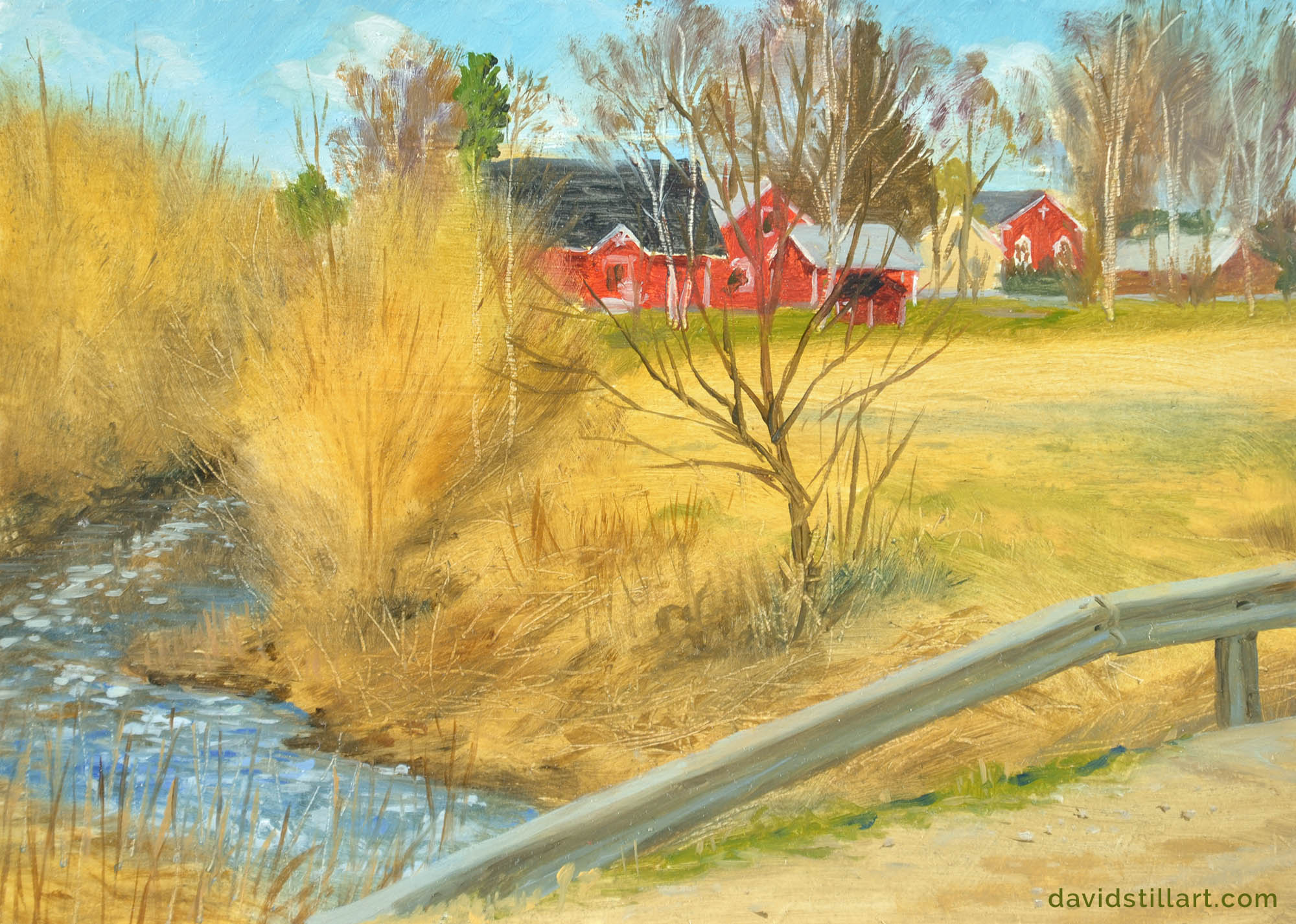 A series of landscapes painted along Vöråvägen in Finland. Each picture includes the place where I was standing when painting the next picture.